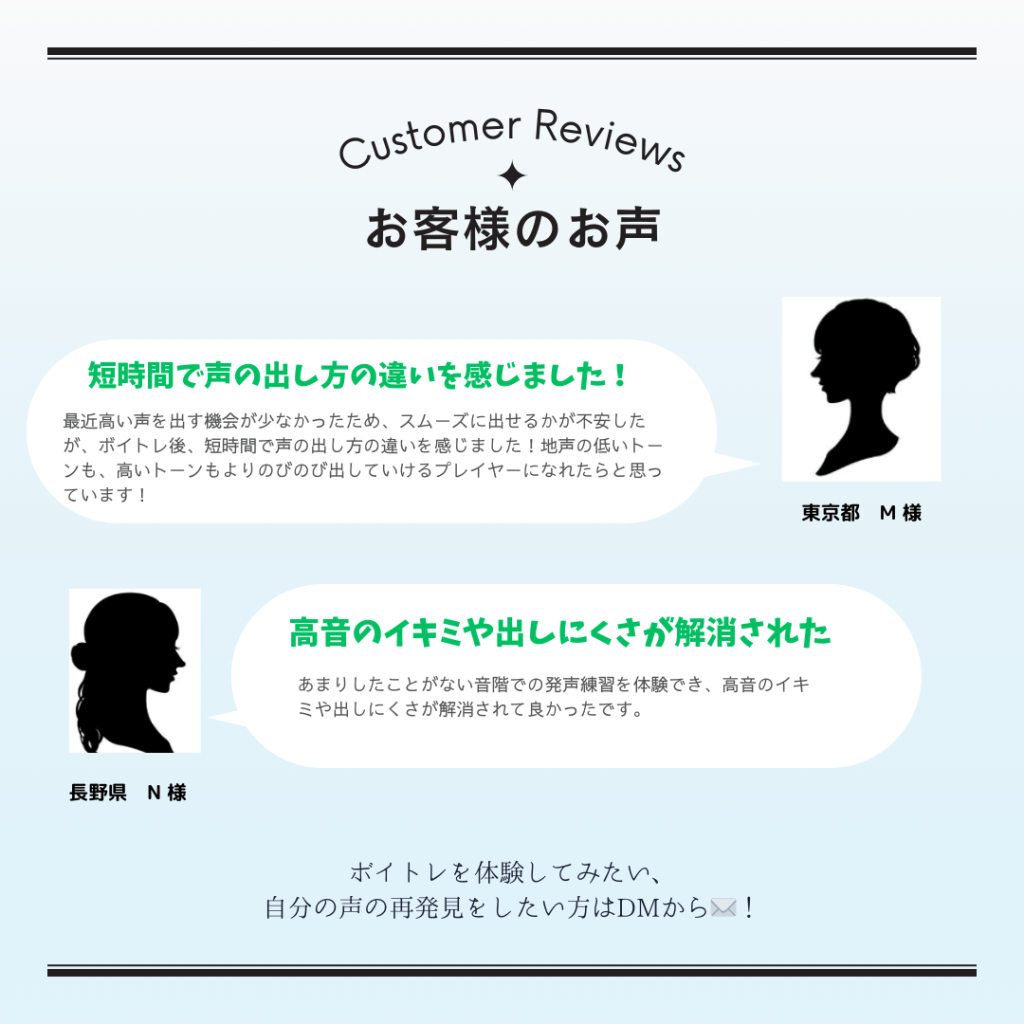 体験レッスンでは声の状態を丁寧にチェック、今のあなたに最も適したバランス発声のアプローチを体感できます。